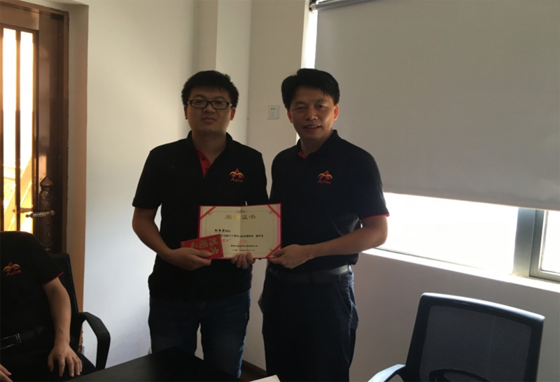 2016年8月,公司成立十周年,黃志敢總經(jīng)理向獲得年度優(yōu)秀員工頒獎(jiǎng)